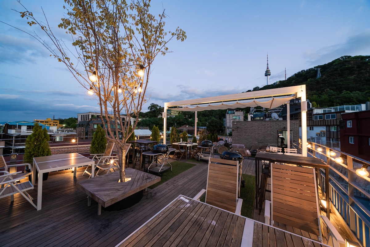 ⦿ Rooftop info -Open: 10am - Close: 10 pm -Rooftop is public space for all guests -Barbecue at Rooftop is available (Reservations are required in advance). ⦿The rooftop, famous for the view of Myeondong and Namsan, was the filming location for the Legend of the Blue Sea by Lee Minho and Jeon Ji hyun ⦿ 5 mins from Myedong station ( 4 line subway), 2 mins from Namsan Towel cable Car.!!! :) ⦿ Check in: 3pm, Check out: 11 am ( Reception is 1st cafe) ⦿ Airport Pick up service is available.