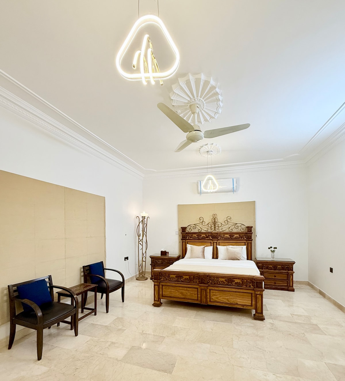 Blissful Stay – Royal Retreat is a large 3 bedroom home perfect for groups and families. It features two lounges and a full kitchen for easy meals. All bedrooms have air conditioning and private bathrooms. Outside, you can enjoy a huge sitting area with a BBQ pit and private parking for 4 cars. The house sleeps 6 people comfortably with extra space for two mattresses. Whether for a long stay or a quick getaway, this home offers plenty of room and comfort for everyone to relax in style.