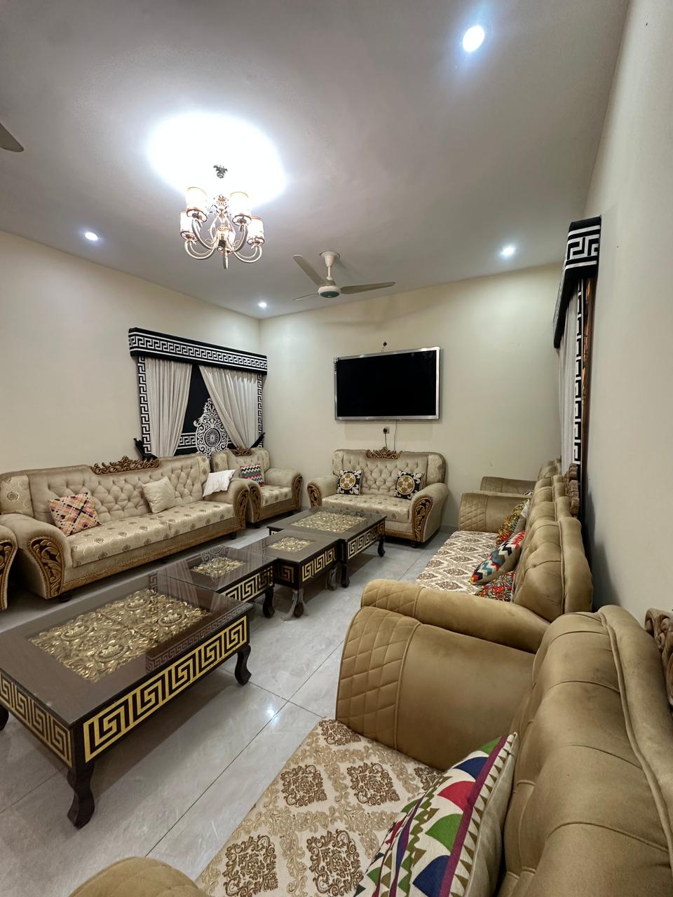 Welcome to our exquisite newly built residence, perfect for families, set in a tranquil and prestigious neighborhood. • Luxuriously appointed with modern fixtures, top-tier amenities, 8 en-suite bedrooms, 3 lounges, and exclusive rooftop. • 24/7 dedicated staff and full-load automatic power backup to ensure your utmost comfort. • Entire property bookings only; no room bookings. • Instantly book or contact me for any inquiries. • Book with peace of mind! Enjoy the freedom to cancel for free.
