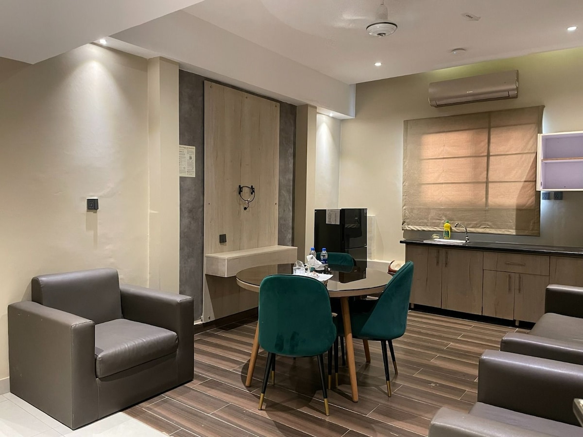 Experience luxurious stay at Central Residence Karachi. This modern place is located in city centre on Ameer Khusroo Road with Expo centre, National Stadium, Agha Khan Hospital, Maritime Museum all within 10 minutes drive. There is Kamal Park, right opposite the property where there is walking track and swings for kids. Mosque is just 2 minutes walk away. Airport is 20 minimum drive away.