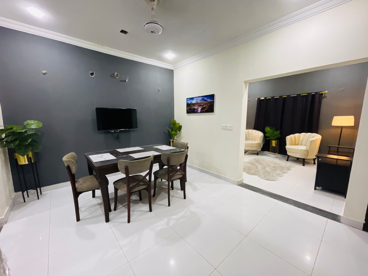 A serene getaway to one of the most stylish Villas in Bahria Town Karachi by one of the best hospitality groups in Pakistan. Fully Airconditioned, Hot Running Water through Electric Geysers, Equiped with 65" Smart TV, Wifi, Table Tennis Table with equipment, Cutlery, Drycleaned Bedsheets, Towels, and what else do you need?