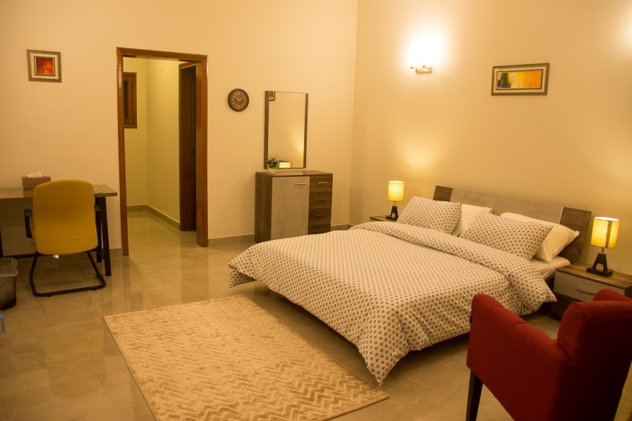 An exquisite inn with amenities provided at a safest and well developed location of Karachi. Gulshan-e-Iqbal, located in close proximity to Airport, Hospitals, Malls, Restaurants, Halls and Amusement parks. The house is fully furnished with decency. Our efforts are not only to meet your necessities but also to provide a safe, peaceful and memorable stay. We assure our best services at most competitive rent and sperately charge drinking water and cleaning.