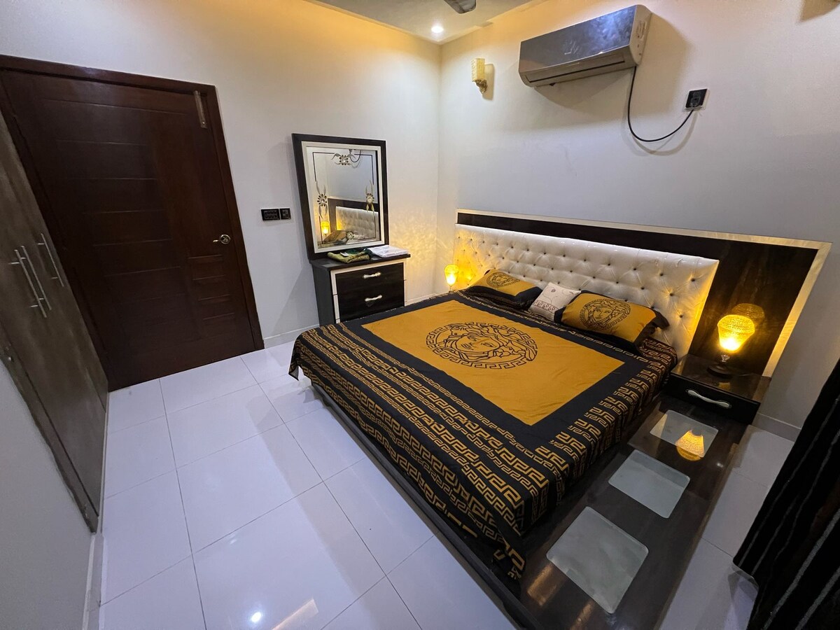 Welcome to your perfect getaway! This sleek, modern apartment combines clean design with luxurious touches to create a cozy yet upscale retreat. Located in the heart of Big Bukhari (DHA Phase 6), you're just steps away from Coffee Bean, Xanders, grocery stores, and an ATM right across the street. Perfect for friends, couples, families, or solo travelers - offering comfort, style, and prime location all in one. Book now for an amazing stay!