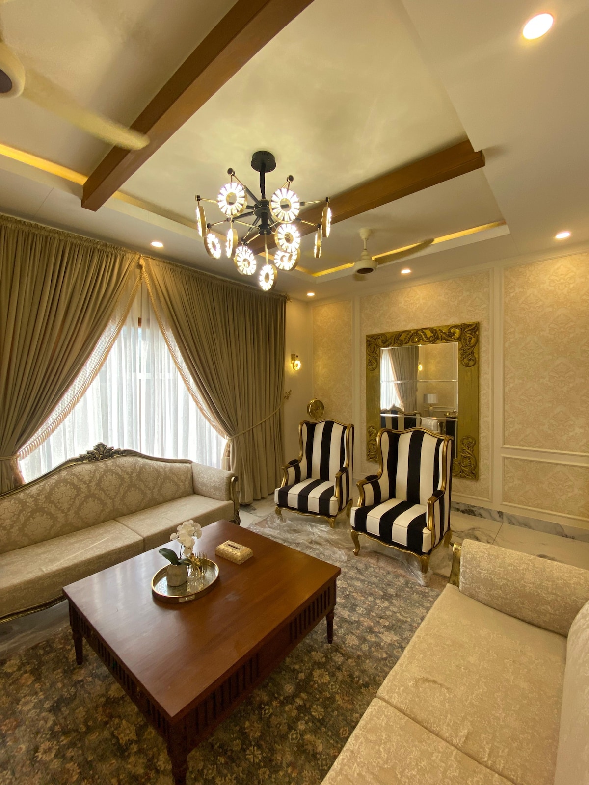 -3 Bedrooms (2 with AC), 3 attached washrooms, 2 living rooms, balcony, roof access and fully equipped kitchen