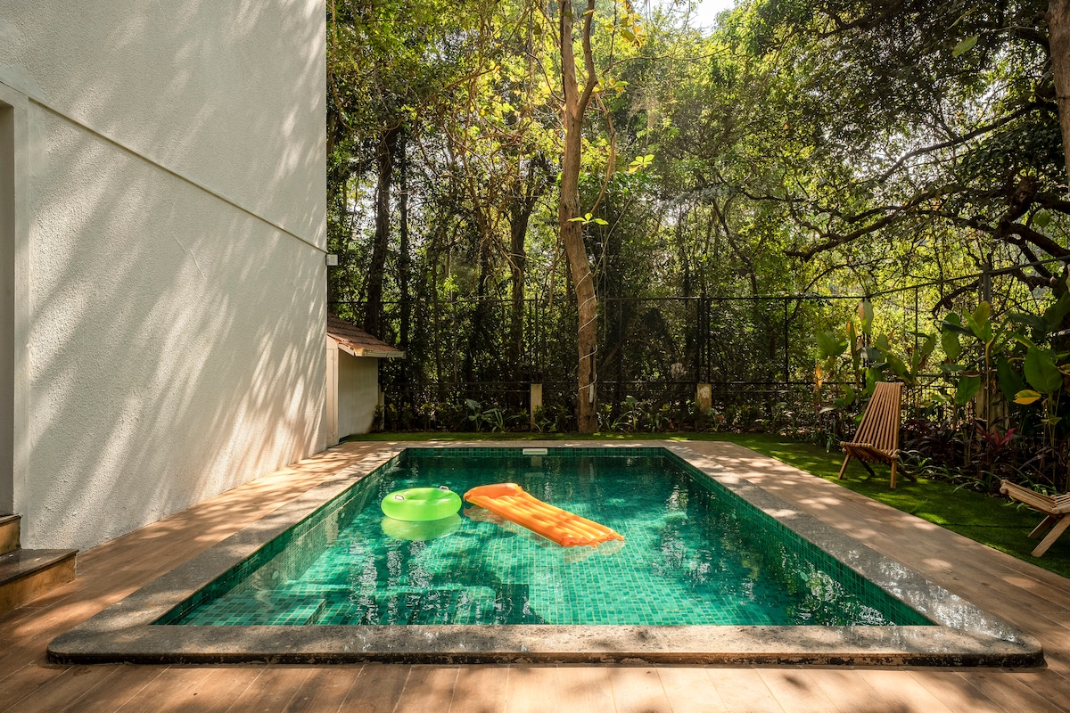 Welcome to Serradurra by Kiwistays, a pet-friendly luxury 3BHK villa, ideal for larger families and friend groups seeking a peaceful Goan getaway. Nestled in the tranquil heart of Goa, this elegant retreat features 3 bedrooms with attached bathrooms, fully equipped kitchen, private balcony and a private pool. It offers the ideal mix of comfort, privacy, and modern living for up to 8 guests. Spread across two spacious floors, the villa is thoughtfully designed to make you feel right at home.