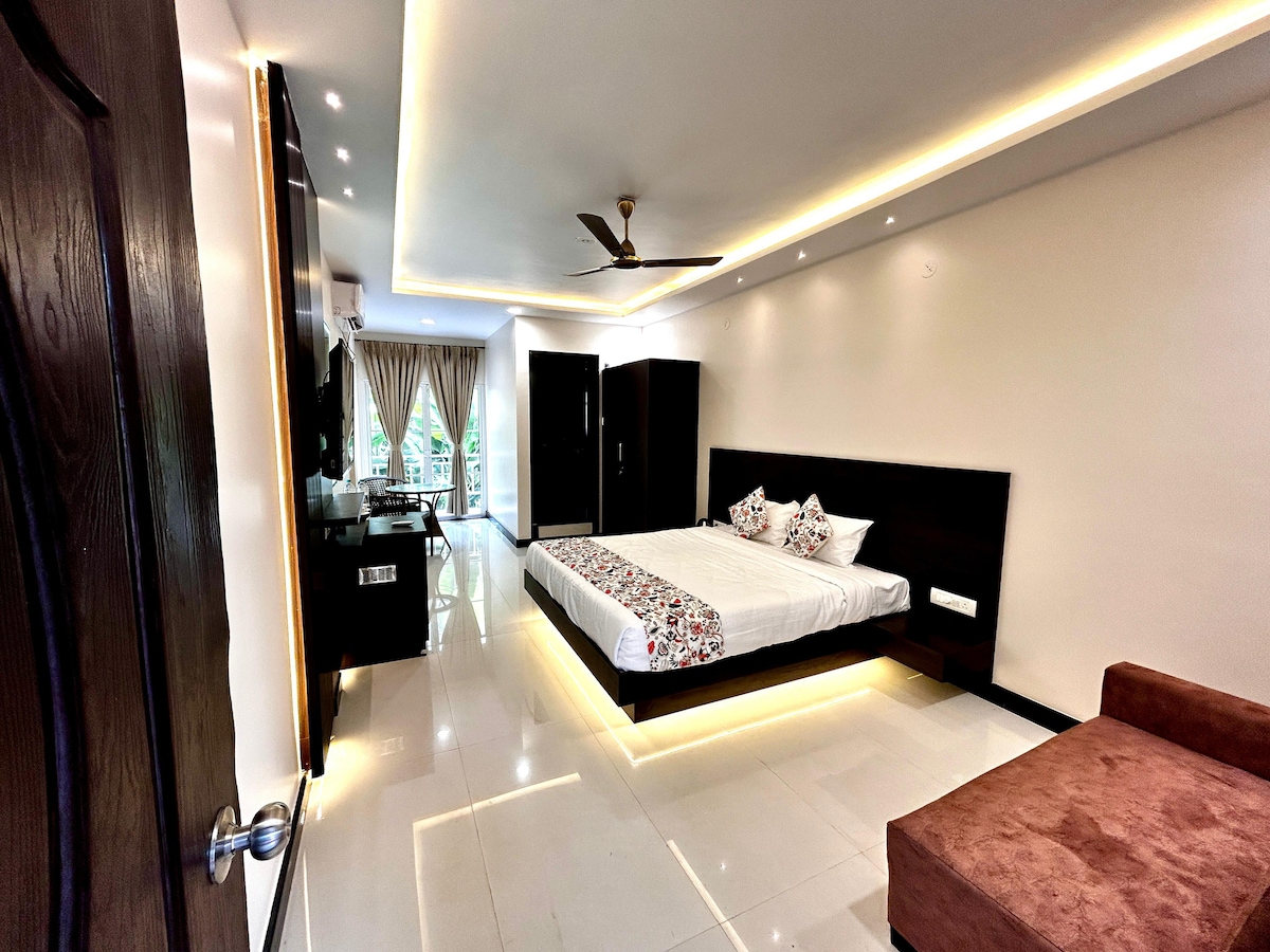 Welcome, As you enter the suite its aesthetic decor and view will leave you spell bound. Wide windows with mosquito nets will help you enjoy the view Space has- ▪️1 open bedroom with a queen size bed. One 6x6 sofa cum bed is provided in the living room to accommodate 4 pax ▪️Bathroom with basic toiletries is designed aesthetically with glass doors. ▪️Living room has 6 seater sofa facing the Smart Tv. ▪️Tiny tea/coffee station with mini fridge is at your convenience. Enjoy!