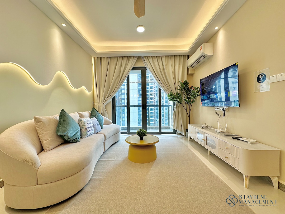 Luxurious spacious 3-Bedrooms unit with Bathtub! Premium quality King & Queen size Beds that guarantee good sleep here with amazing Midvalley Southkey Mall view! Main Highlight! -Private Bathtub -65" Smart TV with YouTube and Netflix apps -Pool Table -Retro Game Console -Drinking water Dispenser Surround with shopping mall & wide range of local tasty food - 2 mins drive to Midvalley Southkey JB - 5 mins to KSL City Mall - 8 mins to City Square Mall & Custom JB