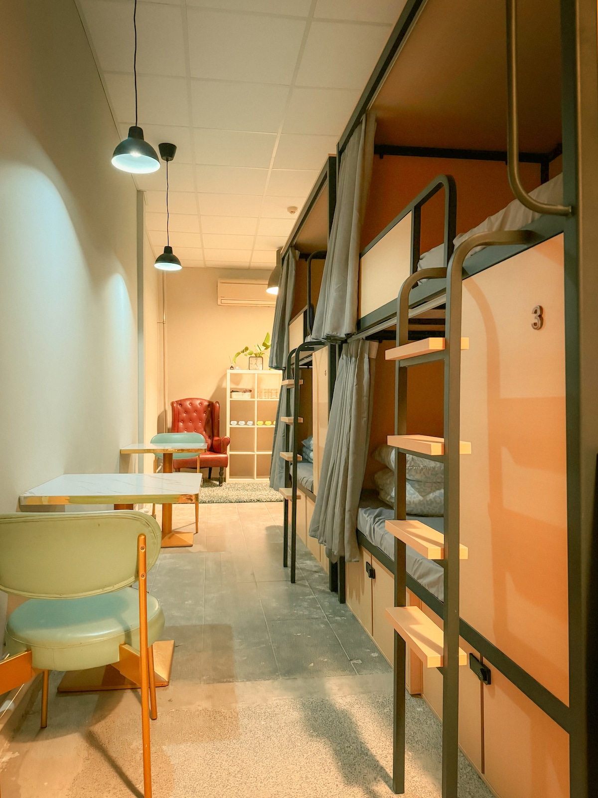 We are co-living hostel located conveniently in Lavender/Kallang area. Room-like Cabin Pod (7 square meter) for 2 pax. Strong air-conditioning are available inside the cabin pod. Bathrooms, lounge and pantry area are shared and located outside your room. Cabin pod are private & accessible with key card. Queen+Single bed, safe box, slippers, dental kit & towels are available in the pod. Ear plugs are available upon request. 3 MRT (Nearby):Bendemeer (Blue)/Lavender (Green)/Farrer Park (Purple).