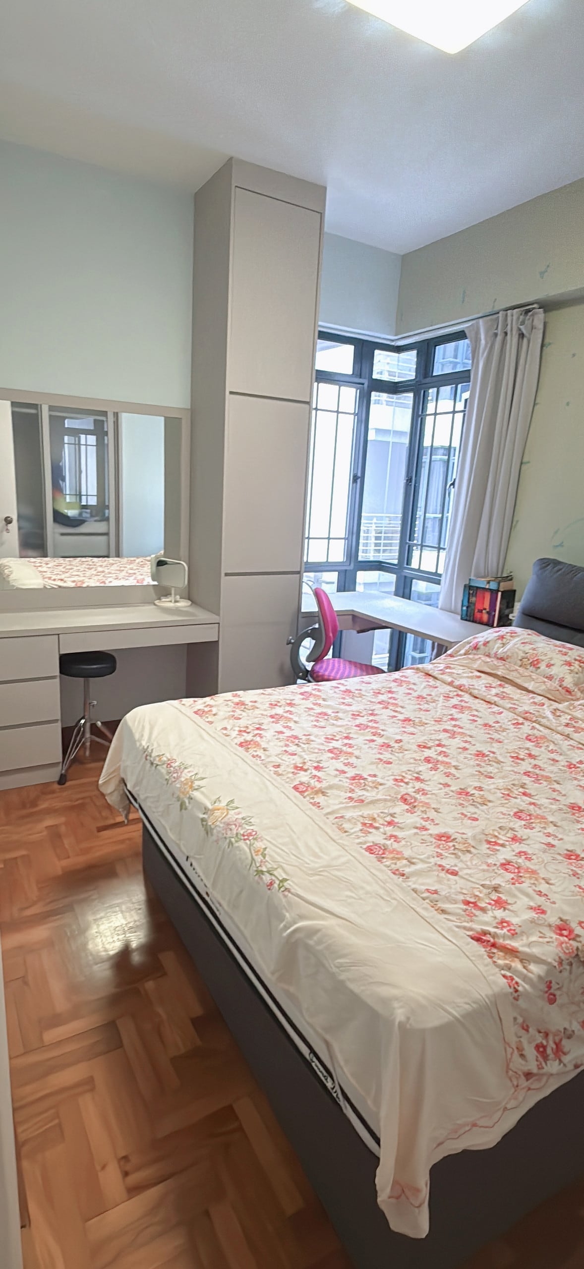 Stay in a beautiful home just 100 metres (5-minute walk) from Katong Park MRT. Marina Bay Sands is 10 minutes away, and East Coast Beach is a 10-minute walk. This is a shared family home where my wife and I live with our helper and our 6-year-old son. Guests have a spacious private bedroom with an ensuite bathroom. The room accommodates up to 5 guests with two queen beds and one single mattress, ideal for families or small groups who value space and comfort.