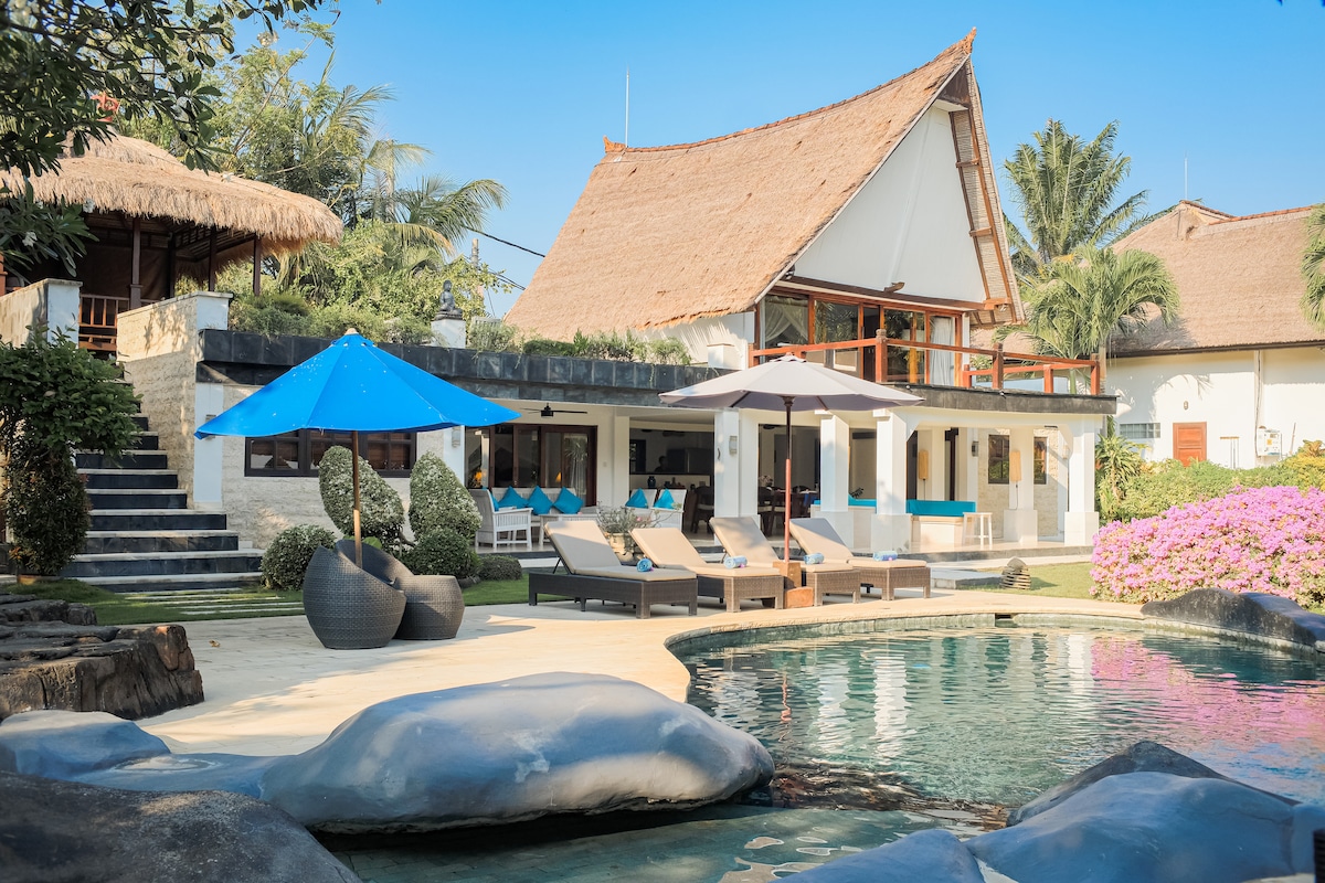 A place to escape the city hustle-bustle and the commercial Bali. Have the whole 1200sqm ( ~ 12900sq ft) space all for yourself! 18m x 5m pool + outdoor jacuzzi with bubble and jetting function. Outdoor BBQ. Wide-angle view of Bali Sea, rice paddies and wine vineyards. Our fully staffed and equipped villa is for those who want to experience the real Bali and serenity.