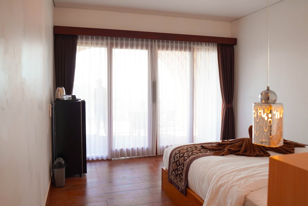 Get your escape experience by 30 minutes from Sidemen and 15 minutes from Bali's mother temple Besakih of Mount Agung. This place offers the best view of Mount Agung, with expansive floor-to-ceiling windows that provide a breathtaking panorama of the mountain. Whether you're enjoying the view from your private balcony or soaking in the natural beauty from the open-air restaurant, every moment here feels special.