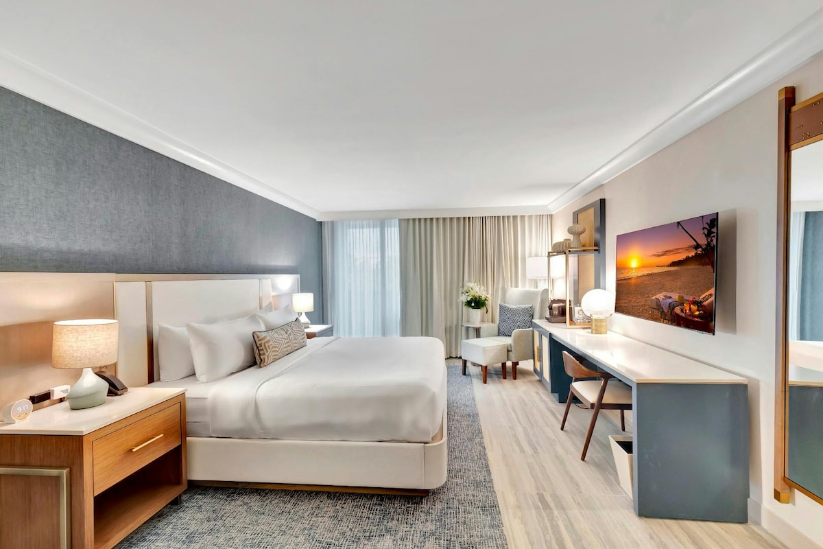 Experience the Deluxe Partial Ocean View King room, thoughtfully designed with coastal-inspired décor and modern comforts. Step onto your private balcony for captivating partial ocean views, where the soothing sounds of the waves and a refreshing breeze invite relaxation. Featuring premium bedding and contemporary amenities, this room is your perfect haven to unwind—whether you’re enjoying a morning coffee or taking in the sunset, every moment is imbued with seaside tranquility.