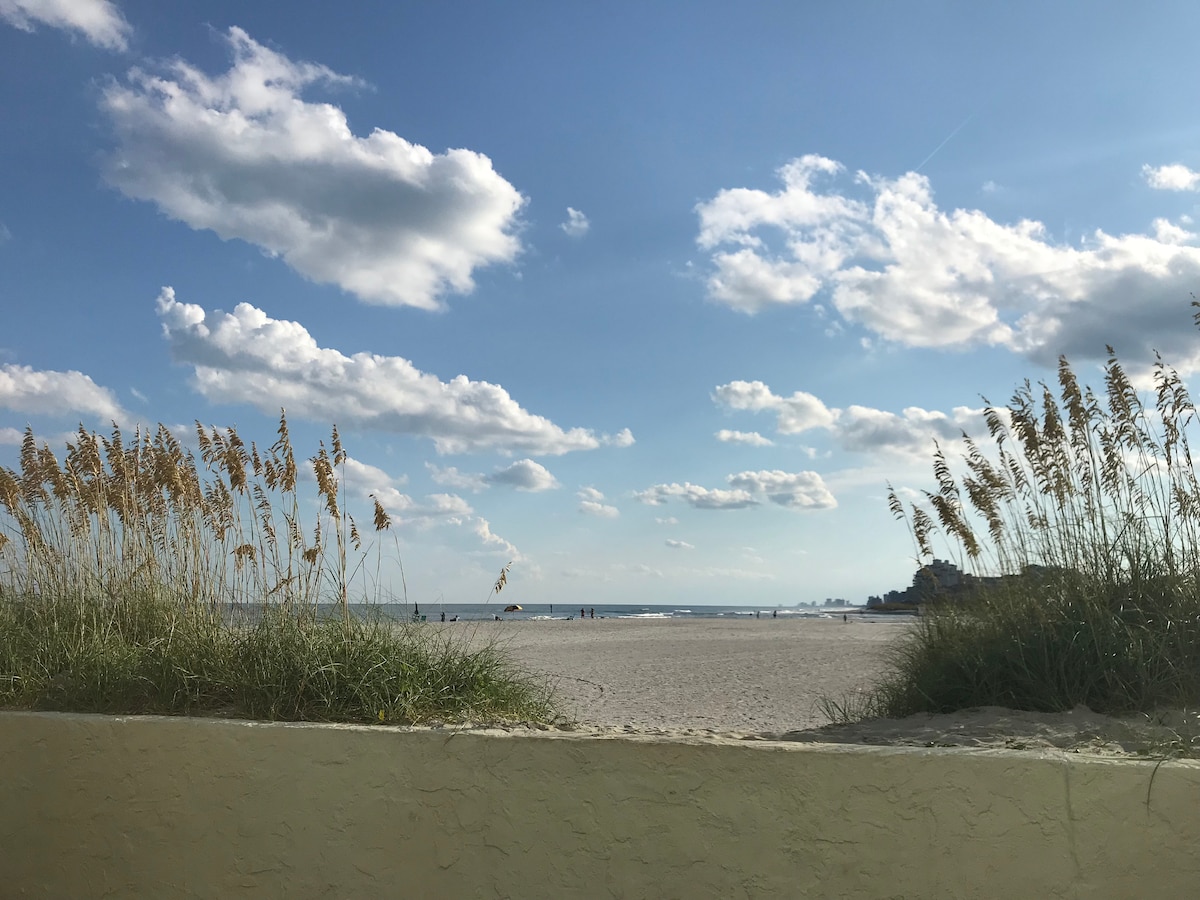 Our Condo is located in a premier oceanfront section of Myrtle Beach! The proximity not only offers an excellent location, but great surrounding amenities, while in a mainly residential setting.This newly renovated condo has everything you could possibly need or want for your beach vacation. There is direct beach access. Indoor(heated) and Outdoor Pools and Hot Tubs. The gorgeous beach is ideal for hours of fun in the sun or long walks along the beach, golf, tennis or just a beach getaway!