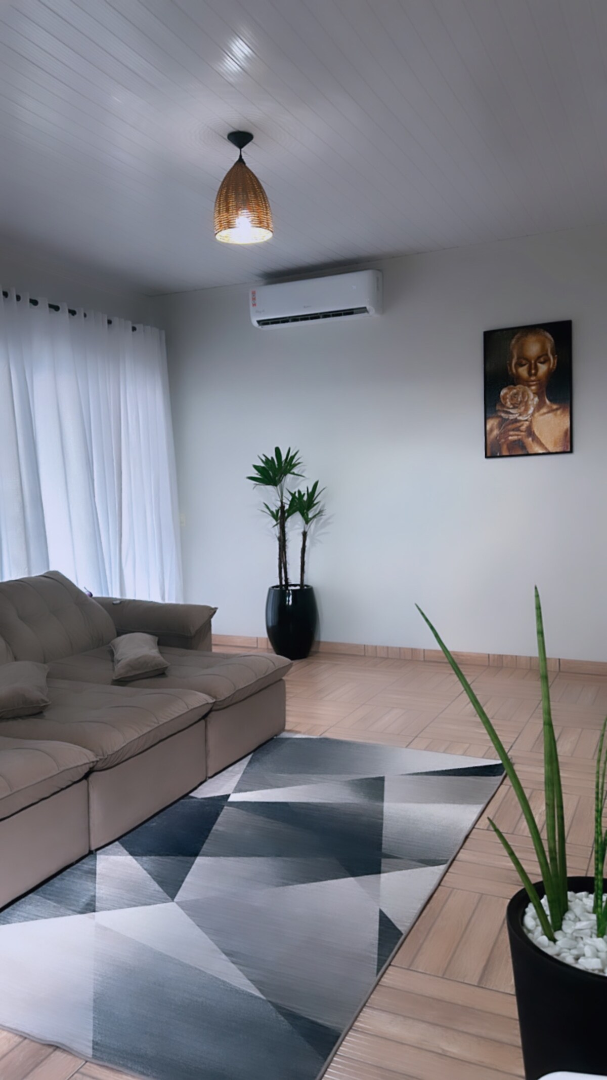Casa localizada próximo ao centro, bairro tranquilo de fácil acesso. Oferecemos Internet, estacionamento coberto e privativo, área de churrasco com mesa de sinuca, cadeiras ao ar livre e lavabo, cozinha com itens básicos, sala aconchegante com TV smart e climatizador, banheiro social, 2 quartos com ar condicionado, sendo 1 suite com cama casal e 2 camas de solteiro, 1 quarto com cama casal e 2 colchões de solteiro extras. Lavanderia com máquina de lavar 8 kg.