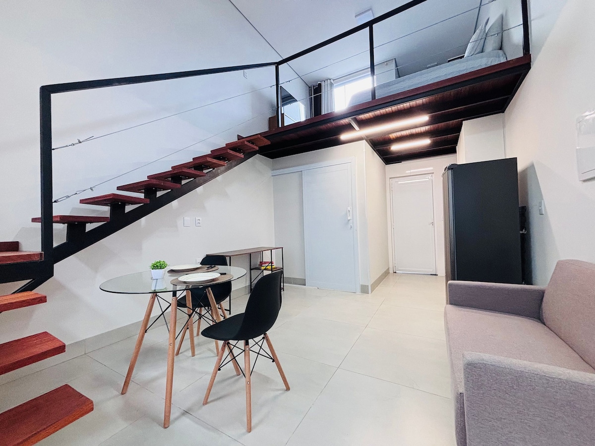 Loft Industrial Mezanino - Climatizado - Até 3 Pessoas ✨ O espaço oferece: - Cama casal + Sofá-cama ou opcional cama solteiro - Cozinha completa e equipada - Pé-direito alto e moderno 📍 Localização Privilegiada: - 5 min do Shopping Sinop - 7 min da UFMT - Fácil acesso ao centro - Academia a 1 quarteirão - Mercadinho a 2 quarteirões 🚗 Garagem: Consulte disponibilidade ao reservar. O espaço perfeito para sua estadia em Sinop com conforto e estilo!