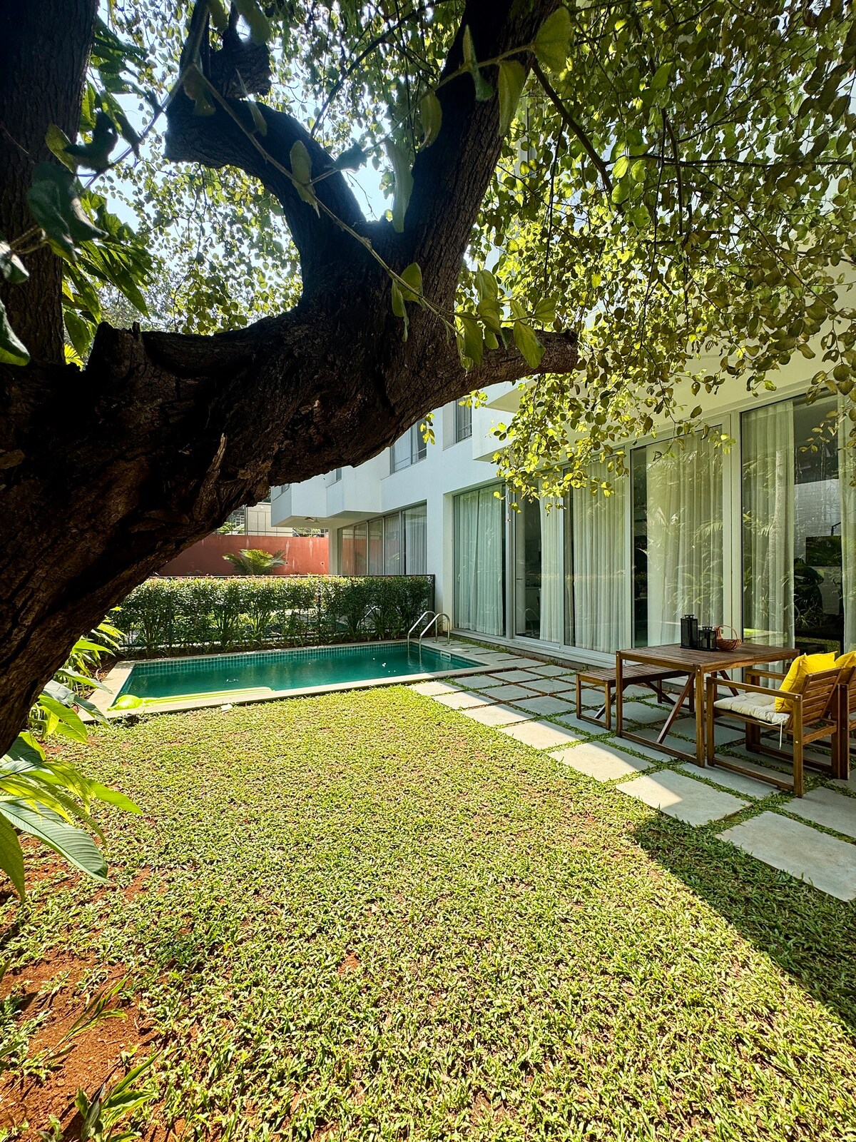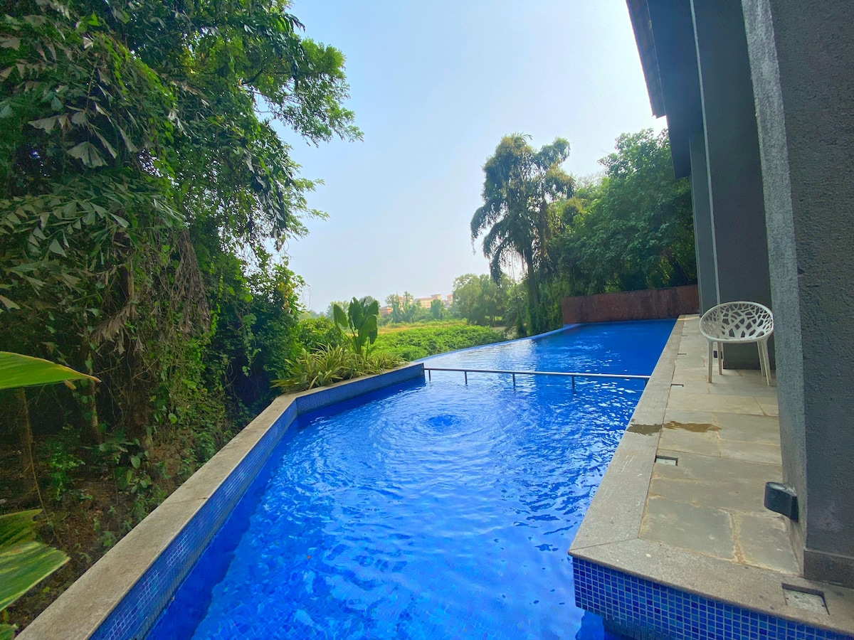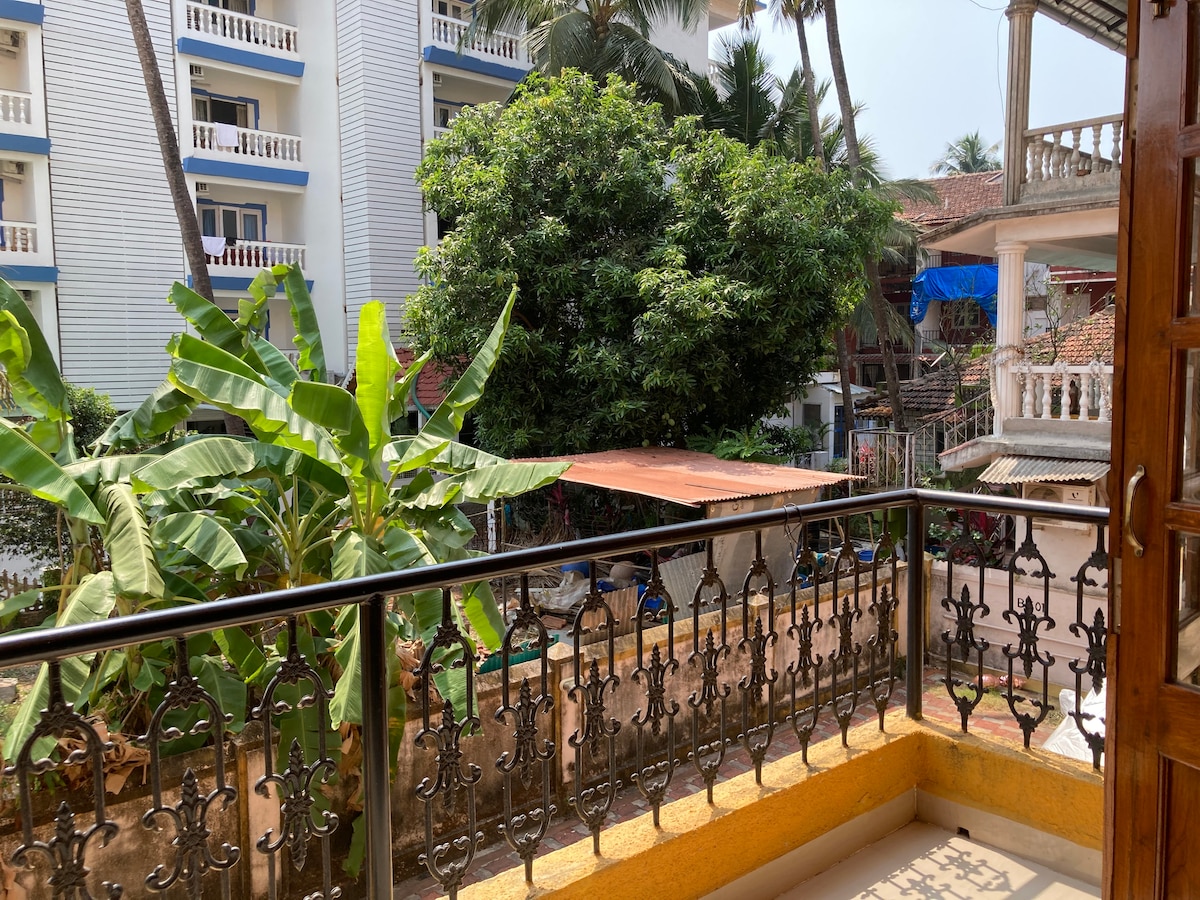 1BHK Tropical view Apartment in Candolim Enjoy a relaxing Goan getaway in this bright and Luxury 1BHK apartment with a balcony overlooking the tropical view and lush green courtyard. The space is designed for comfort, style, and convenience perfect for couples, families, friends or solo travelers. What You’ll Love: Fancy Bedroom Cozy Living area Spacious Dining area Fully equipped kitchen Spacious bathroom Access to Swimming pool, GYM and Yoga centre ,Pool table. Reserved parking