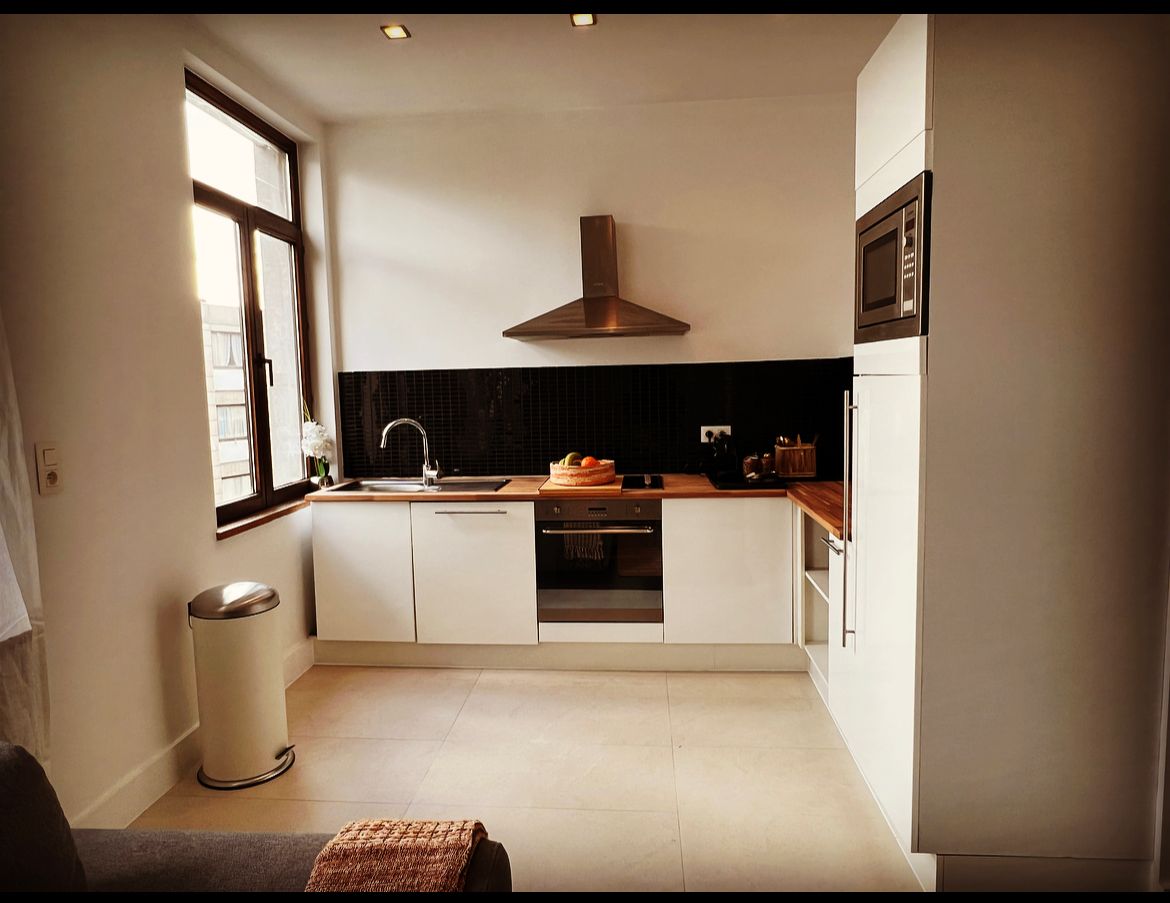 Welcome to Centerland, a stylish pied-à-terre in the city center (rue d'Argent). Bright one-bedroom apartment: queen-size bed, living room with sofa bed and Smart TV, fully equipped kitchen, fast Wi-Fi, bathroom with bathtub/shower and double sink, washer/dryer. Self check-in. Within walking distance: Grand-Place, Galeries, chocolate shops, boutiques; De Brouckère metro station and Central Station nearby. Ideal for couples, professionals, or small families.