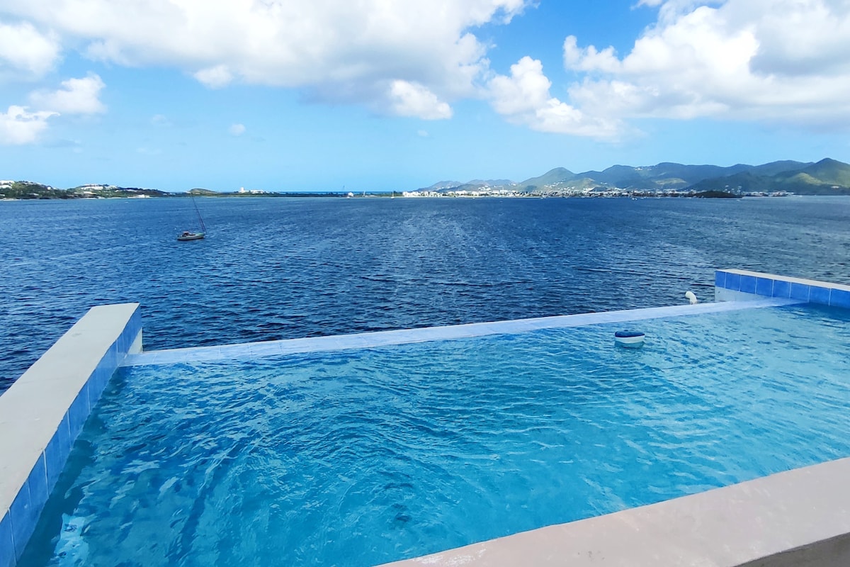 Wake up to the magnificent panoramic view of the lagoon on the top floor, rejuvenate your body with a refreshing dip in the private rooftop infinity pool with a coffee or tropical drink. Take a 10 mins stroll to the famous Mullet bay Beach and grab a few freshly French croissants by the Square. After sunset, enjoy the plentiful neighborhood bars and restaurants or take 5 mins drive to Maho where you will find a vast variety of restaurants, casino and clubs or Porto Cupecoy for romance spot.