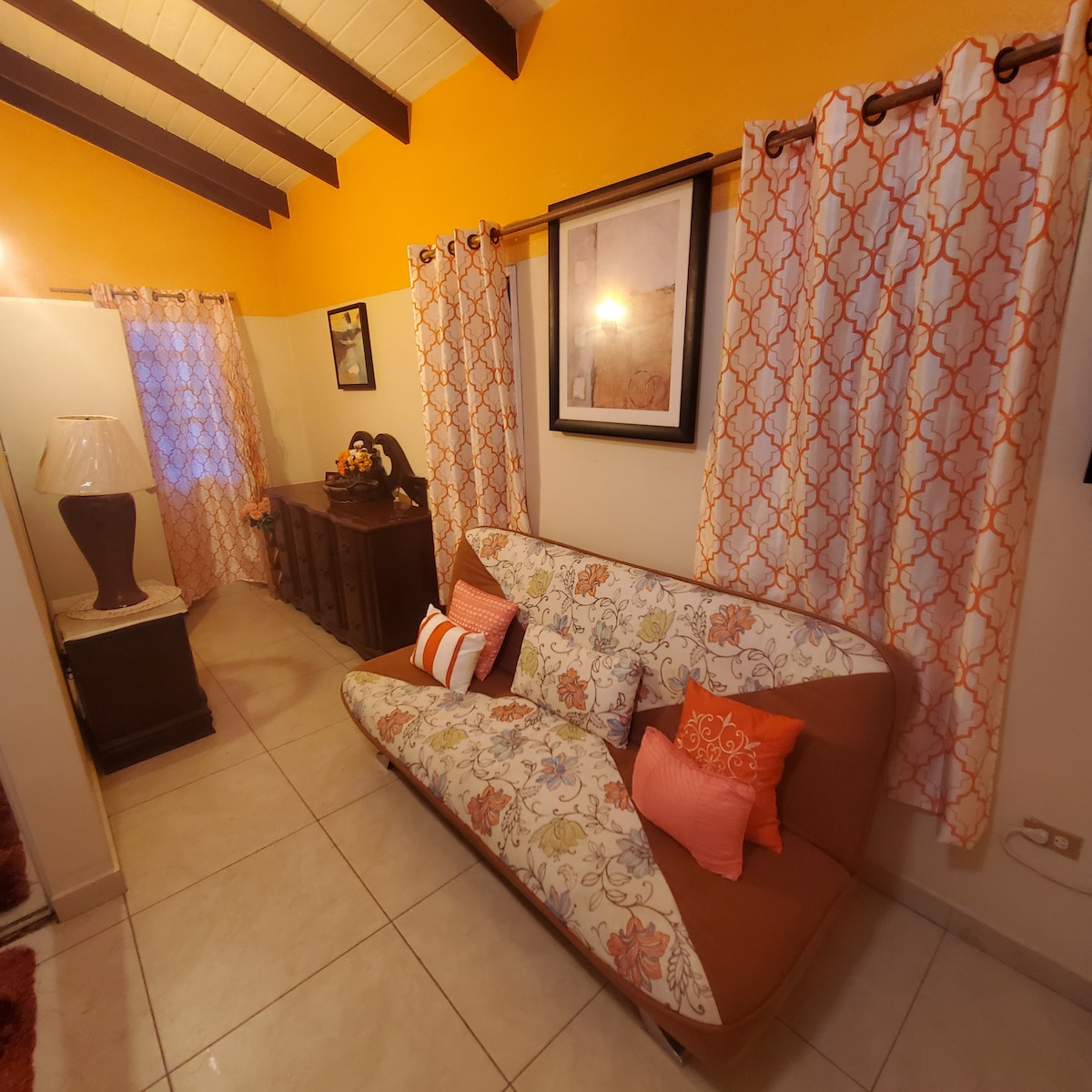This Cottage is a peaceful retreat just 15 minutes by car from Philipsburg, with easy access to shopping, dining, and the waterfront. After a day of exploring, relax in your private space surrounded by palm trees and Caribbean birds. The cottage has a fully equipped kitchen, cozy living areas, and comfortable sleeping quarters on the second floor. Perfect for couples or families, with air conditioning, a ceiling fan, and a smart TV. Book now for the perfect mix of convenience and tranquility!