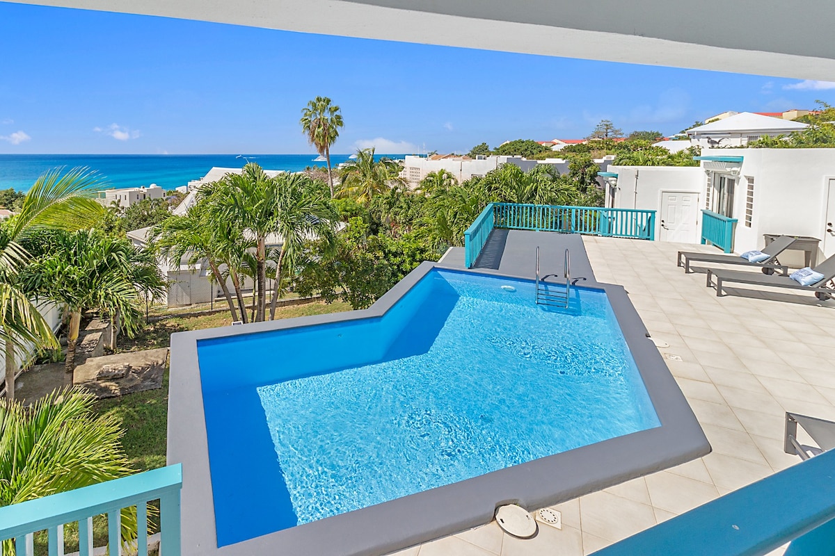 Enjoy breathtaking ocean views from this hilltop home in Belair, perfectly positioned to watch cruise ships arrive in the morning and depart beautifully lit at night. The property offers a saltwater swimming pool. The guest house features three comfortable bedrooms and three bathrooms. A house caretaker resides in a separate, fully independent first-floor apartment. Centrally located, the home is just few minutes from drive to explore to all areas of St. Maarten’s popular spots.