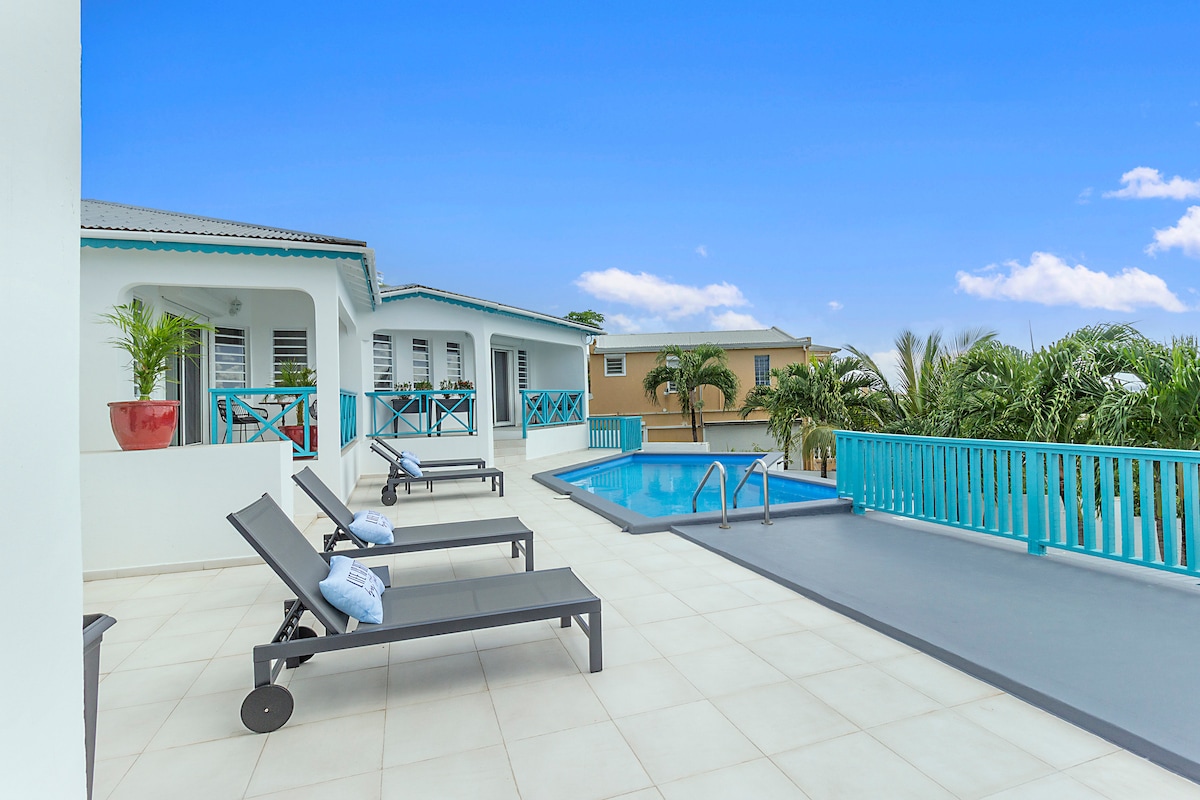 Blue Sail Apartments is an oasis of peace and beauty in a serene Caribbean setting. All apartments overlook the garden and pool, which is exclusively for our guests. Living outdoors feels like being at home, surrounded by Caribbean plants and singing birds. We have several one-bedroom apartments, all with the same features: a fully equipped kitchen, a beautiful living room with a sea view or a lovely private patio, a shared laundry area, and housekeeping and linen changes.