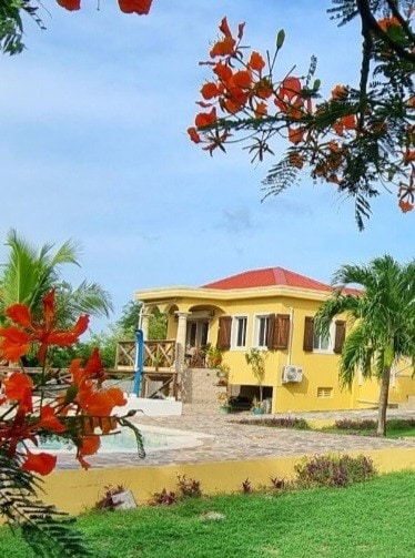 This lovely guesthouse is in the heart of the residential section of St. Maarten called Oyster Pond. It is one of the best neighborhoods on the island because of the peaceful, serene, and stunning views of the pond and ocean. The neighborhood is unique because of its location on the border between the French and formerly Dutch, now Country St. Maarten, side of the island. Two beaches are within a 5-minute walk from the bungalow. The bungalow is located inside a safe gated community.