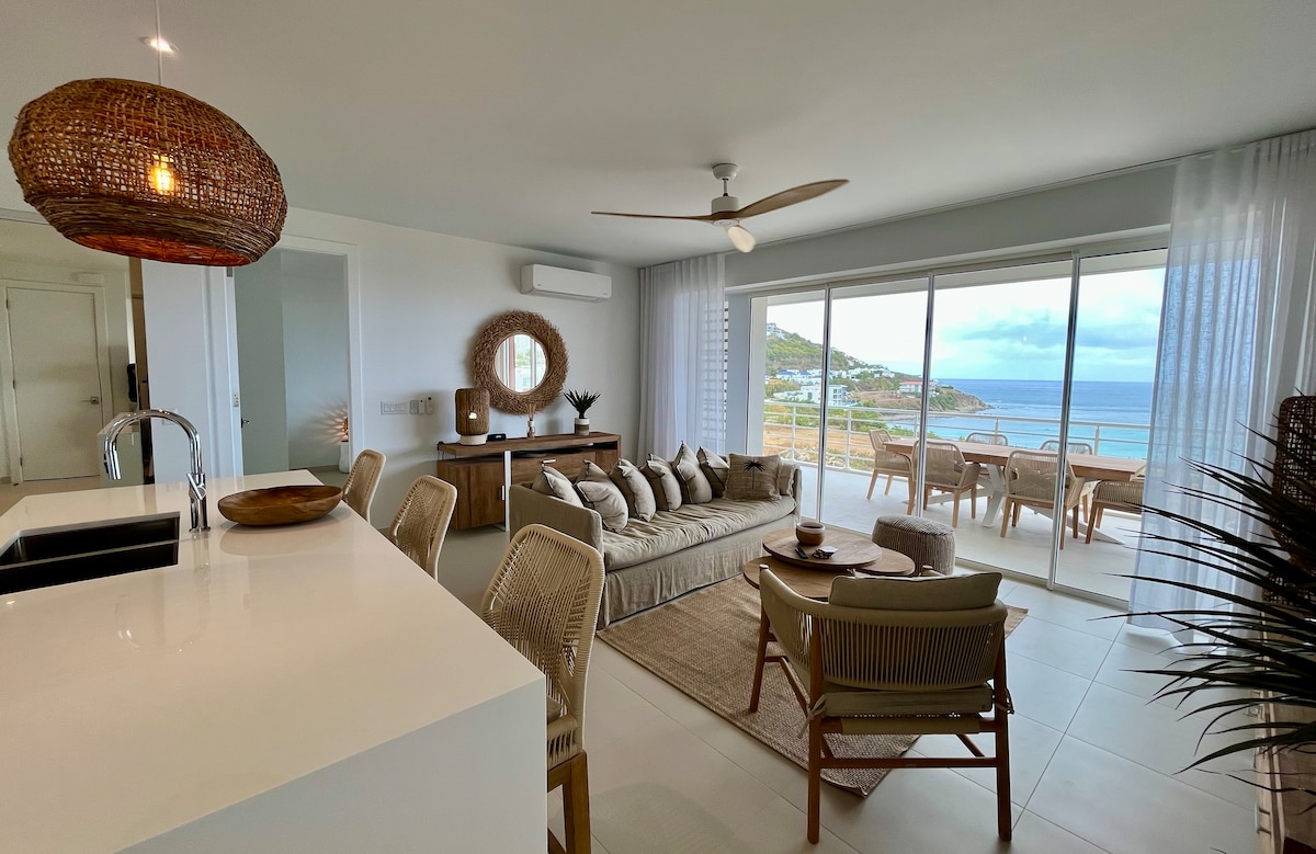 BRAND NEW CONDO in a quiet gated community! "Sunrise Over St. Barths" is an oasis of luxury and elegance, built into the hillside overlooking the Atlantic Ocean and St Barth. Enjoy the sunrise every morning in this modern property consisting of 2 master bedrooms with 2 bathrooms, living room with fully equipped kitchen, exterior terrace and laundry area. Each bedroom and the living room have unobstructed panoramic views of the ocean. A breathtaking infinity pool and a sundeck overlook the ocean.
