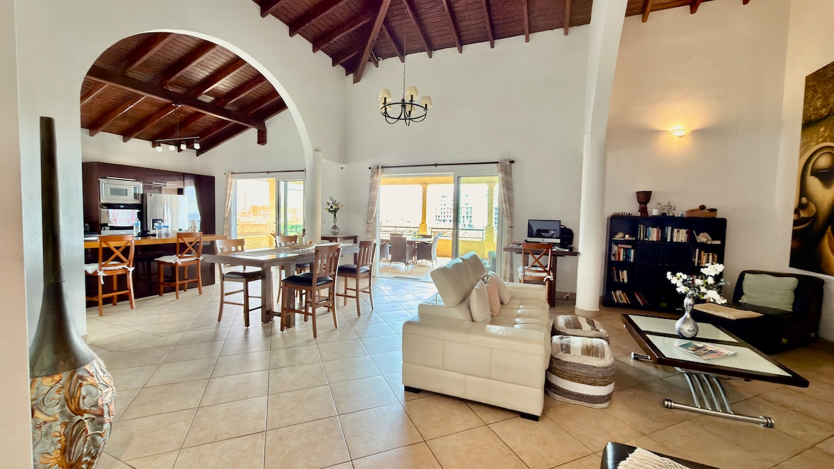 Wake up to the magnificent panoramic view of the lagoon on the top floor, rejuvenate your body with a refreshing dip in the private rooftop infinity pool with a coffee or tropical drink. Take a 10 mins stroll to the famous Mullet bay Beach and grab a few freshly French croissants by the Square. After sunset, enjoy the plentiful neighborhood bars and restaurants or take 5 mins drive to Maho where you will find a vast variety of restaurants, casino and clubs or Porto Cupecoy for romance spot.
