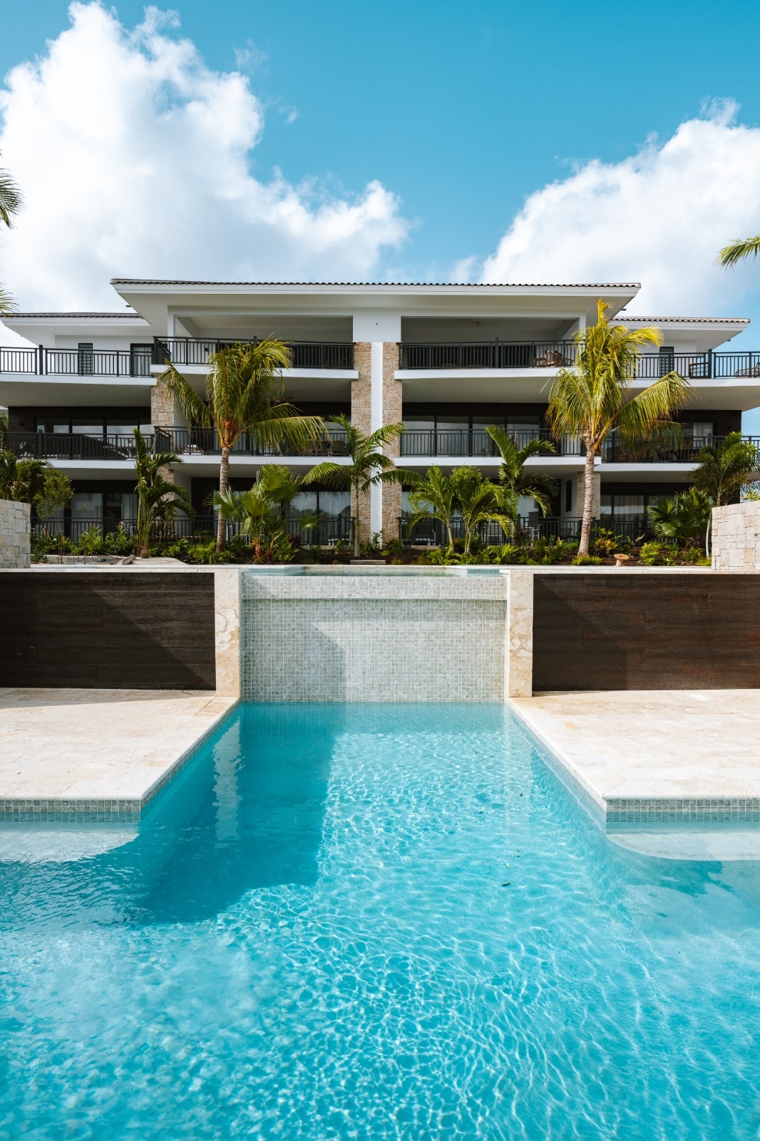 Luxury Beachfront Apartment – The Shore at Blue Bay Wake up to breathtaking ocean views from your private balcony in this modern beachfront apartment at The Shore. Located within Blue Bay Golf & Beach Resort, it offers direct access to the white sandy beach, restaurants and beach bar — all just steps away. Walk through the lush garden and past the infinity pool, reserved exclusively for guests and residents.
