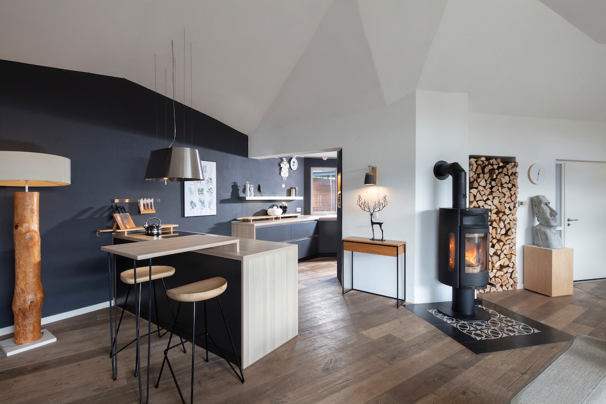现代度假屋,带壁炉,很有魅力