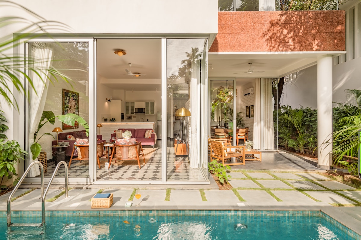 Escape to La Donaira, a modern 2BHK villa in Siolim with its own private pool and chic design. The villa offers a cozy living room, dining area, and a fully equipped kitchen for home-style meals. Both ensuite bedrooms are on the first floor, with one featuring a private balcony for quiet mornings. Located in a gated community with free open parking, the villa is perfect for a stylish and comfortable stay close to Goa’s beaches and vibrant spots.