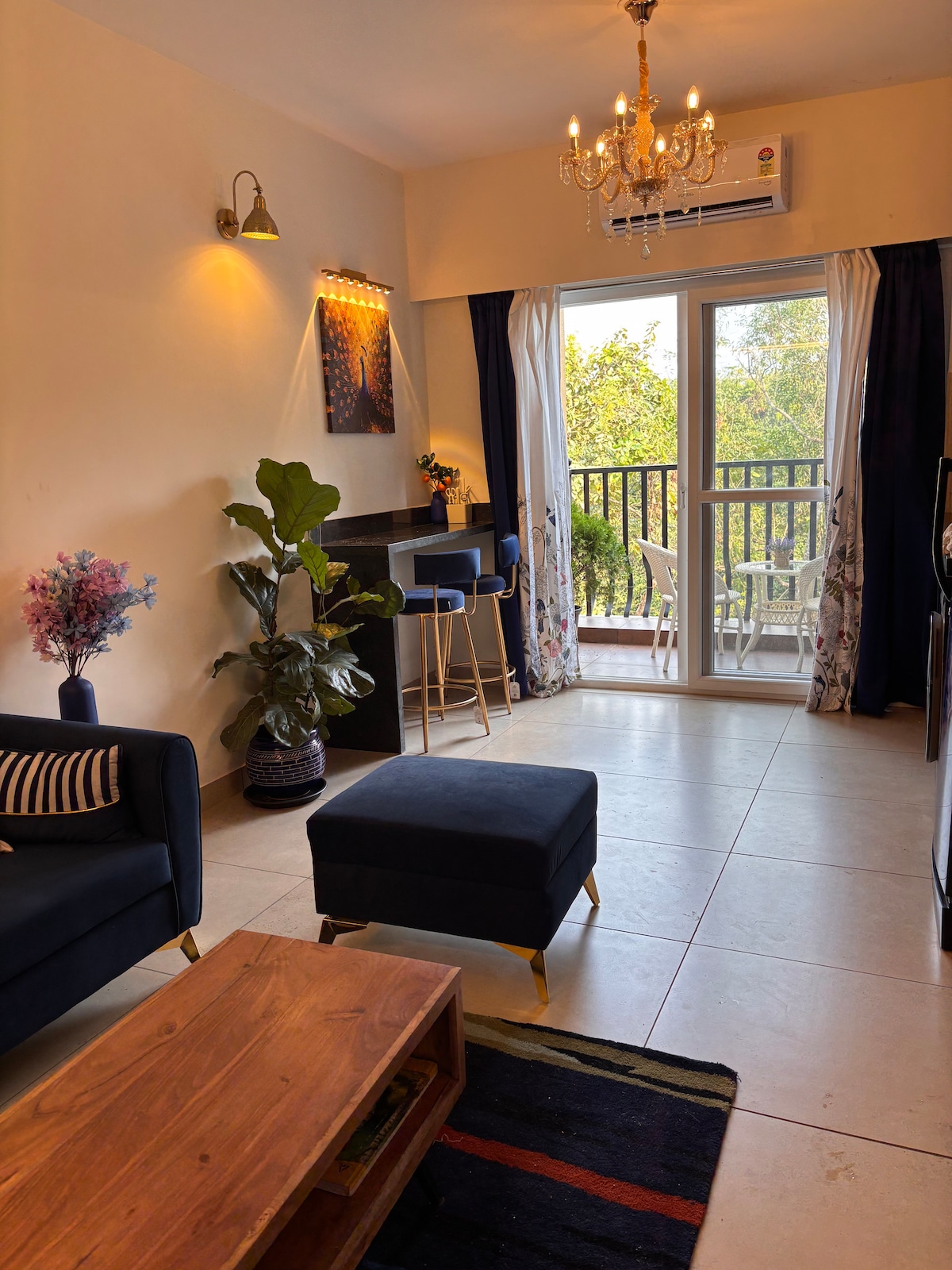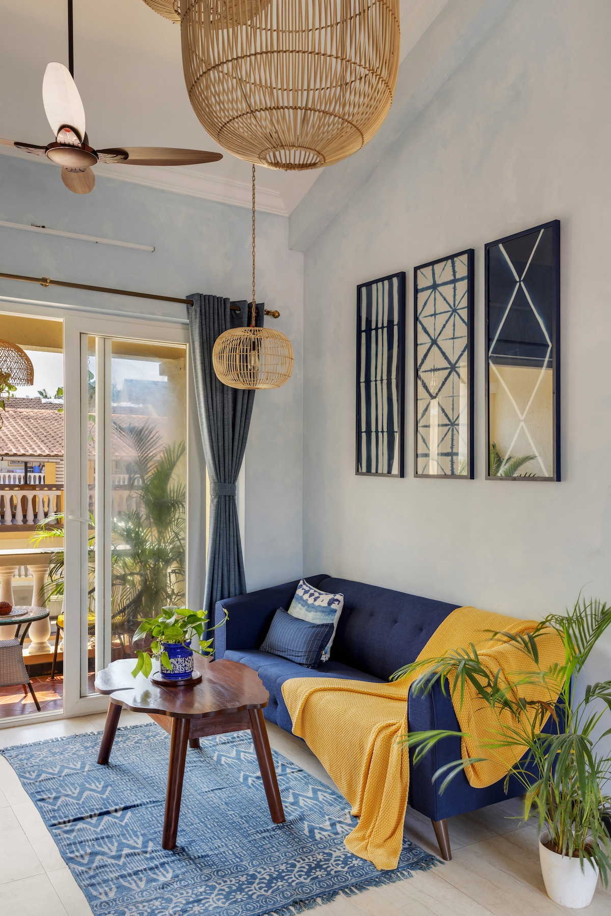 Soulful Nest 'Bloom' is a cosy home with vibrant & soulful elements indoors and view of beautiful green vistas outdoors in a peaceful Goan neighbourhood. A place to rest, rejuvenate & reconnect amidst the comforts of a stylish modern home and blissful blooming green surroundings. Soak in the early morning sunshine while sipping on your morning cup & listening to the birds chirping outside your windows, even occasionally visiting your balcony. A comfortable home to unwind on your holiday.