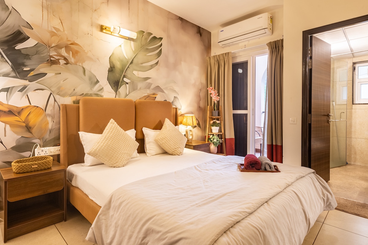 Welcome to Grandiosa by tisyastays! This luxury 1BHK Apartment features a beautifully designed living room, kitchen, balcony, and 2 bathrooms, all located in the heart of Goa. Situated in Candolim, just a 5-minute drive from the beach, the property offers top-notch amenities, including a spacious rooftop pool and a gym with views of lush greenery. The home is crafted with love, using the finest materials and premium furniture to ensure a grand, luxurious, and comfortable stay.