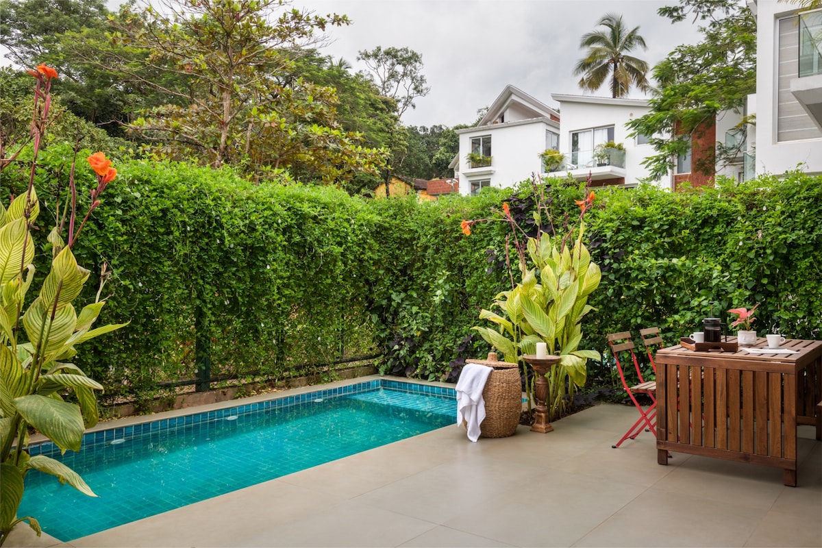 Situated in the picturesque village of Moira in North Goa this stylish, contemporary and comfortable cottage is perfect for both vacation and work. The fully equipped independent air-conditioned cottage has a spacious open plan living room with full kitchen, a bedroom with en-suite bathroom, and pool. It has its own garden, sit-out and driveway, with parking. Enjoy the peace and quiet of a Goan village while being a short drive away from all the major attractions of North Goa.