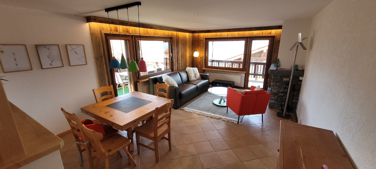 This cozy, newly built (2023) Chalet enjoys excellent sunshine even in the depths of winter. The huge bay windows of the living room offers you a magnificent and unobstructed view of the mountains and the valley, like a giant painting changing with the seasons. You will never get tired of it. Beautiful 3 bedroom chalet minutes from the Nendaz ski slops (5 min by car), restaurants and bars in the heart of Nendaz. You can enjoy Sauna shared with its sister FeelGood Chalet.