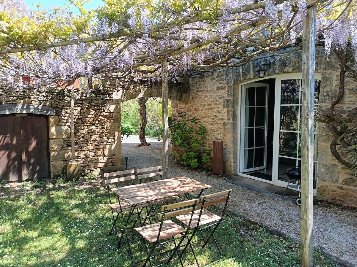 Bâtisse du 18ème siècle offrant un charmant logement indépendant de 35m2 entièrement rénové avec sa terrasse pour prendre un café au soleil le matin. Le studio est organisé autour d’une cuisine ouverte sur un bar en chêne avec un coin salon et TV connectée. La chambre avec literie Buletex et salle de bain en pierre. Vous serez au calme tout en étant à moins d’un kilomètre des commerces et baignades dans la Dordogne. A proximité des plus beaux villages de France, châteaux et jardins.