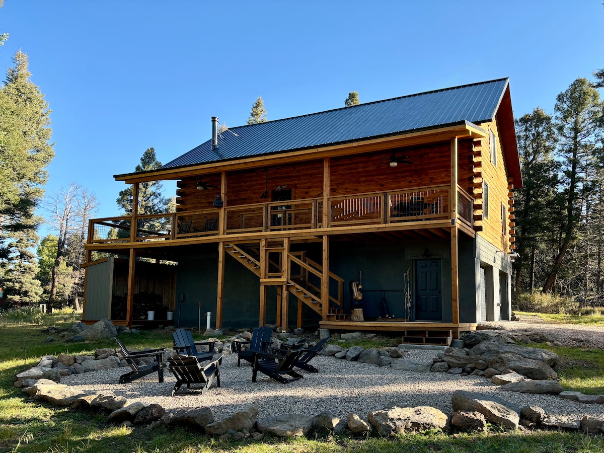10 Acres | Year-Round Adventures | Dog Friendly w/ Fee This cabin towers above the forest floor, framed by conifers, aspens, and sweeping views of the Moreno Valley, Angel Fire Resort, and the Sangre de Cristos. Inside, the 3-bed + spacious loft, 3-bath cabin pairs lodge-style comfort with mountain luxury. Surrounded by alpine beauty and top-notch resort perks, this retreat invites you to ski fresh powder, fish in the lake, tee off on PGA-rated greens, or bike the acclaimed mountain terrain.