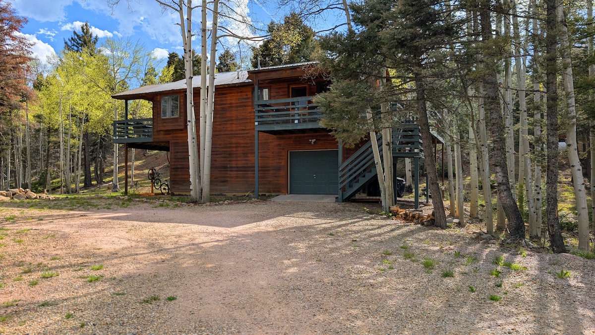 This charming 1940's log cabin has been completely updated with high-end amenities, creating the perfect balance of rustic luxury. Located on 5 acres adjacent to Carson National Forest, the cabin backs up to a beautiful mountain wall and river running right off the back deck (typically dries up Oct-Jan). Just 10 min to the plaza, you’ll be close enough to enjoy the action of town, but far enough way to escape people and immerse yourself in nature. Lots of great hiking trails just minutes away.
