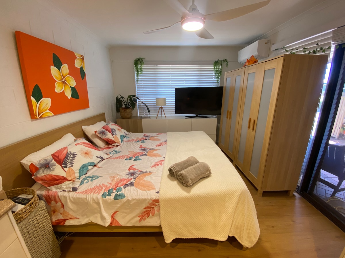 Our conveniently located studio apartment is just 10 minutes from the beautiful Maroochydore and Mooloolaba beaches. Enjoy a well-appointed private and cozy air-conditioned space including a 55" smart TV with Netfix, gigabit internet, and a work desk. Your own bathroom, kitchenette and private patio with BBQ. Washing machine, ironing board, and secure parking, suitable for Caravans and Motor Homes. Our Sunny Studio is the perfect base to explore surrounding beaches, local dining and shopping.