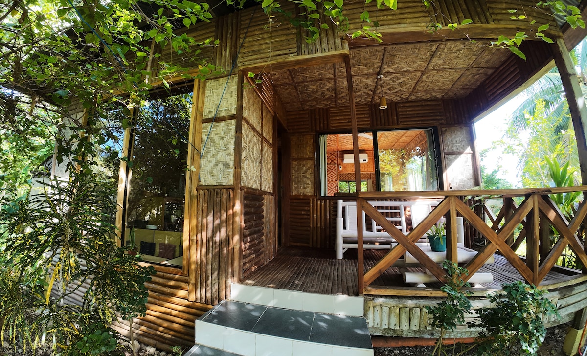 Rhumbutan House is located on the west coast of Siquijor Island on a low bluff above a narrow beach (15m wide) with incredible sunset views to Apo Island. Two air conditioned bedrooms, a small private plunge / swimming pool in the front garden overlooking the sea. A large shaded front deck and direct beach access. At high tide the sea almost reaches the garden; at low tide a rocky platform is exposed where locals search for shellfish in the traditional way. Tropical gardens. There are no hawkers