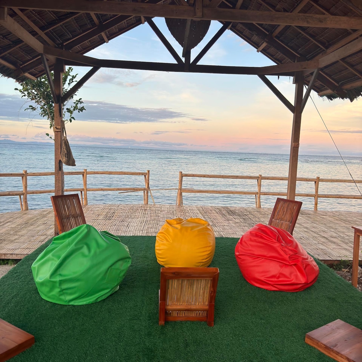 A charming bamboo cottage situated on a property with a spectacular bamboo deck on a cliff offering a 180° view of the beautiful San Juan coastline. A bamboo staircase leads directly to the pristine waters below. Guests have the option to swim directly to the Paliton marine sanctuary 200m away or take a leisurely stroll 100m to the beach. The cottage also boasts of modern amenities, such as Starlink Internet & air conditioning