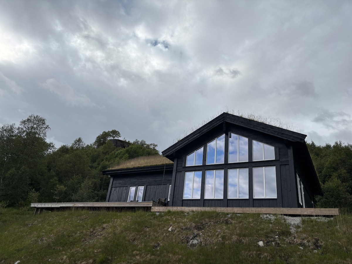 Velutstyrt ny hytte bygd 2022 med flott utsikt. Hytta ligger fritt til, er fullt utstyrt og har 3 soverom og romslig hems med sovesofa og TV og er utstyrt med dyner og puter for 10 soveplasser. Varme i gulvet på bad, gang og stue og kjøkken. Kjøkken med åpen løsning. kaffetrakter, vinskap, Micro og stort kjøleskap. Wifi fiber. Stor terrasse og gassgrill på terrasse. Ved til peis medbringes av leietaker og er ikke inkludert i leiepris. Strømforbruk inkludert. Leietaker vasker og rydder ut.