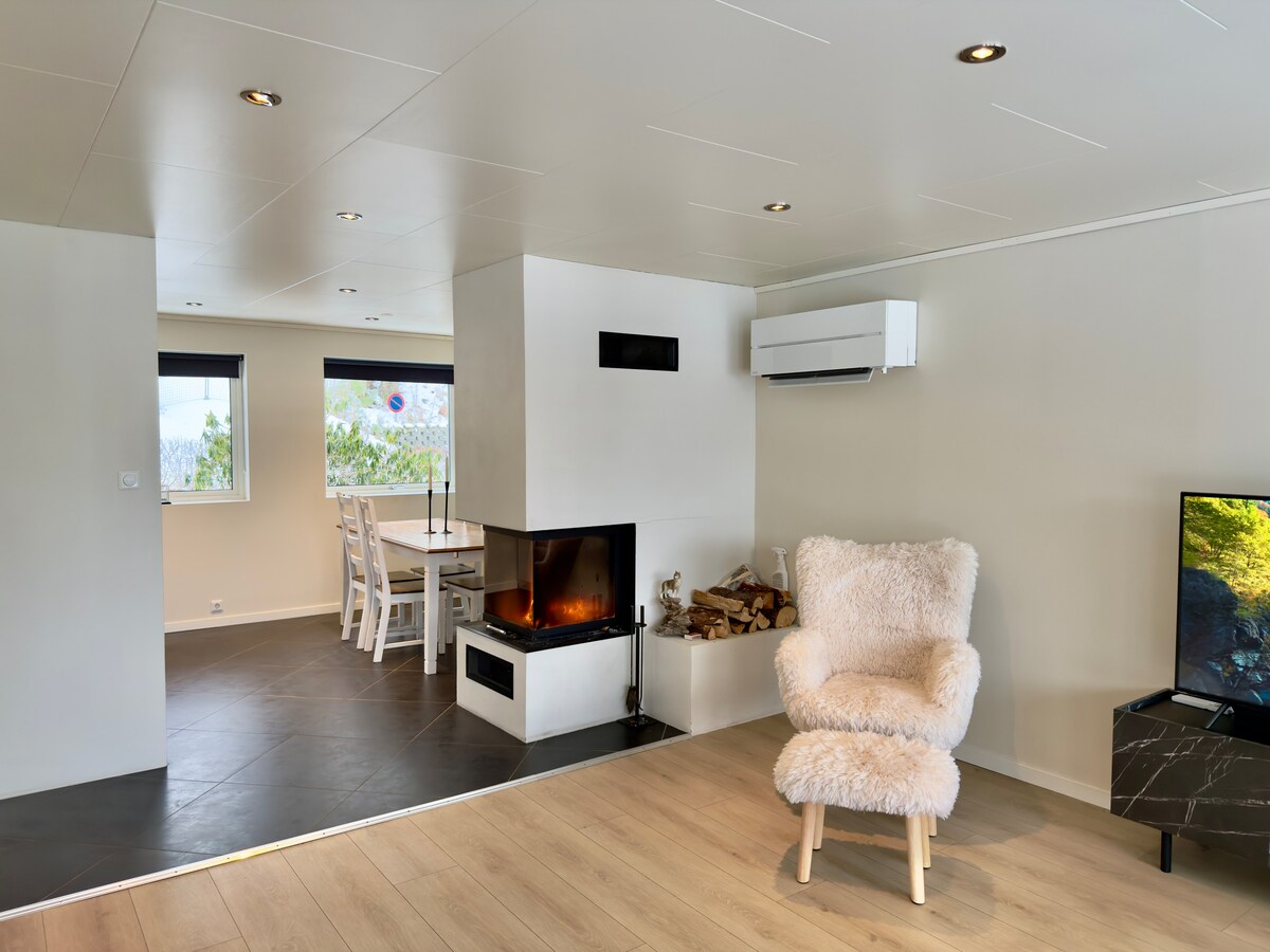 Boligen ligger kun 2 minutters kjøring fra Tonstad sentrum, men i et rolig og etablert nabolag. 5 minutter kjøring til Feed Skiarena og 10 min kjøring til Bjørnstad skisenter (alpin). 40 min kjøring til Sinnes og Sirdal skisenter. Tonstadbadet ligger 5 min unna. Mye fine turmuligheter i området. Huset har flott utsikt over Tonstad, med komfort, privatliv og nærhet til alt du trenger - enten du er på helgetur, ferie eller jobbreise Sengetøy og handkler kan bestilles i tillegg.