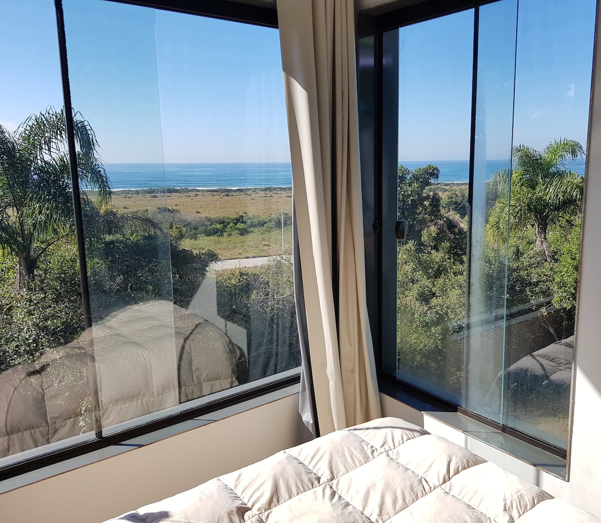 Nossa casa segue um conceito inovador unindo conforto, sustentabilidade e natureza. Ideal para casais, pet friendly. Está localizada em um lugar privilegiado de frente para o mar e cercado de mata nativa, em um terreno amplo e cercado. Nosso espaço dispõe de ar-condicionado, aquecedor, internet wi-fi 5G 200mb, cozinha completa, churrasqueira, alarme, e tudo o mais que é preciso para desfrutar desse paraíso ouvindo o mar e os pássaros.