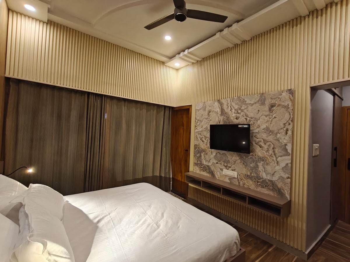 - 3 BHK - Breakfast Included - Valley View - At Mall Road - Lpg Stove - Connected to 4 Lane National Highway - In House Parking - Fully Equipped Kitchen - 3 Luxury Bedrooms With 3 Bathrooms - Microwave - Jacuzzi (/chargeable) - Steam & Sauna (chargeable) - Spa (chargeable) - Gym (chargeable) - Theatre (Chargeable) - Bonfire with Grill (chargeable) - Door Step Delivery Of Groceries - Smart Lcd With Ott - Bathroom Slippers - Zomato Service Available -Refrigerator -Pets Allowed