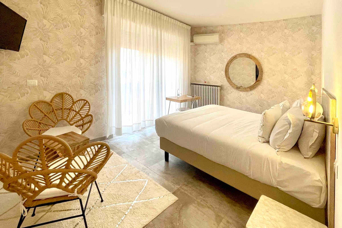 Exclusive Junior Suite in a wellness boutique hotel just steps from Lake Garda. Its highlight? A private whirlpool tub on the terrace for pure relaxation under the open sky. Elegant design, a cozy king-size bed, modern bathroom with spacious shower, and a tea and coffee corner. An intimate retreat where comfort, well-being, and romance come together to offer you an unforgettable stay.