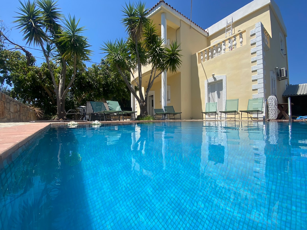 The villa is located 80 meters from the sea, in the picturesque village of Sissi. With sea and mountain views, this luxury property is close to all local amenities. An ideal combination for the perfect summer holiday with family or friends. The spacious outdoor area offers a large sun terrace with sun beds and a 35 m² swimming pool. Our villa features a heated pool (Optional). In April, May and October, the heating is complimentary. Outside of these months, a small fee of €10 per day applies.