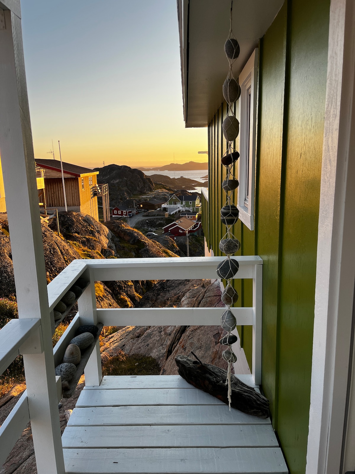 The villa worthy of preservation is from the colonial era and is located on Teleøen with a fantastic view of Paaraarsuk, the sea and the town's landmark Nasaasaaq / Kællingehætten. The villa is located on the mountain a few meters from the water and is on two floors. For the villa there is an enclosed garden for free use. We are looking forward to have you as our guests and invite you into our home and spend a cozy time together.