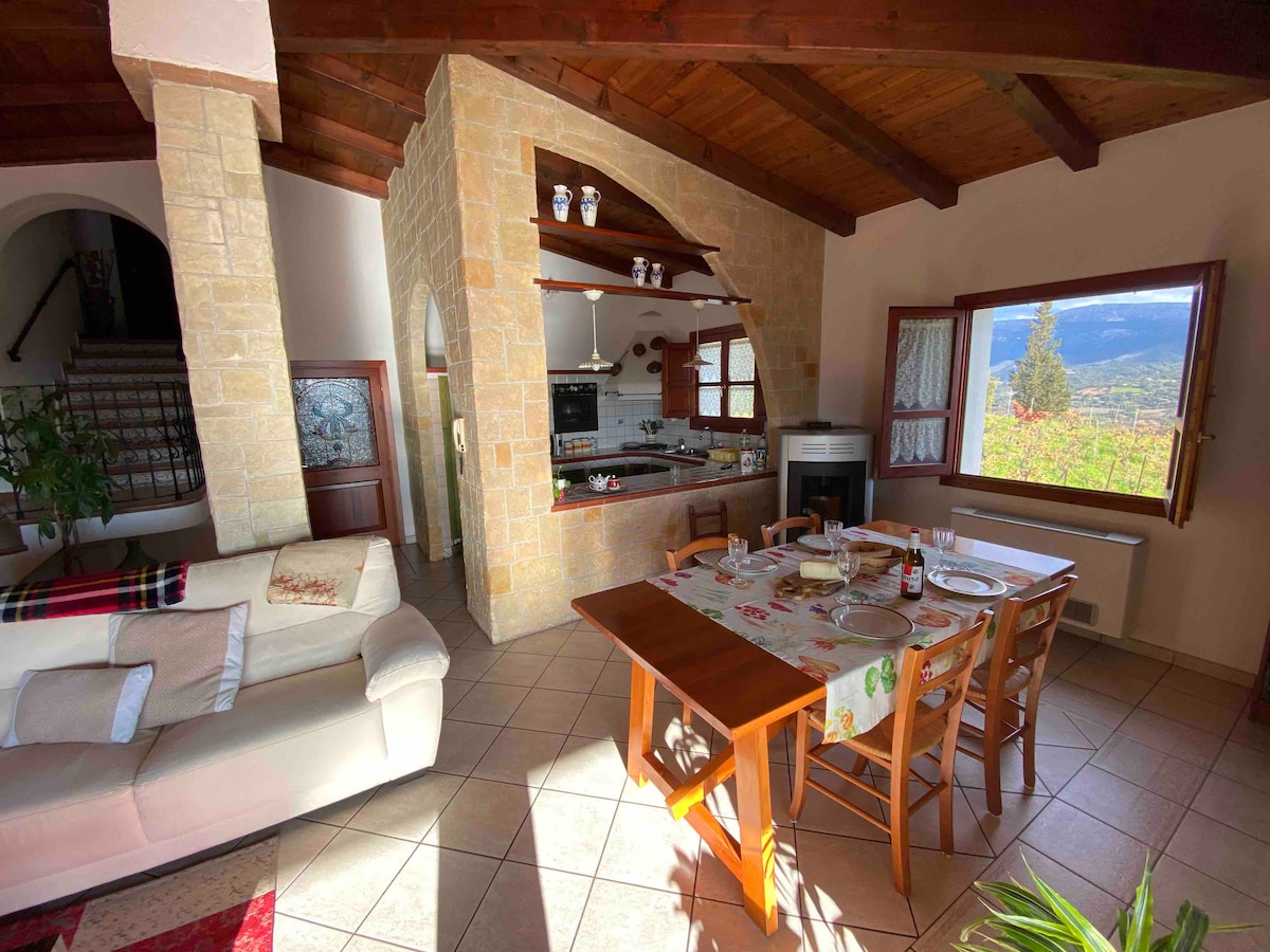 Appartamento con terrazza privata e vista panoramica sulle colline circostanti e sul mare. L'appartamento è dotato di zona living con angolo cottura, una camera da letto con letto matrimoniale, due divani e un bagno privato. Il B&B è situato in cima ad una collina, lontano dal rumore del traffico e delle città. Perfetto per stare in relax e godersi una rilassante vacanza. La colazione, compresa nel prezzo, viene servita ogni mattina nella veranda porticata.