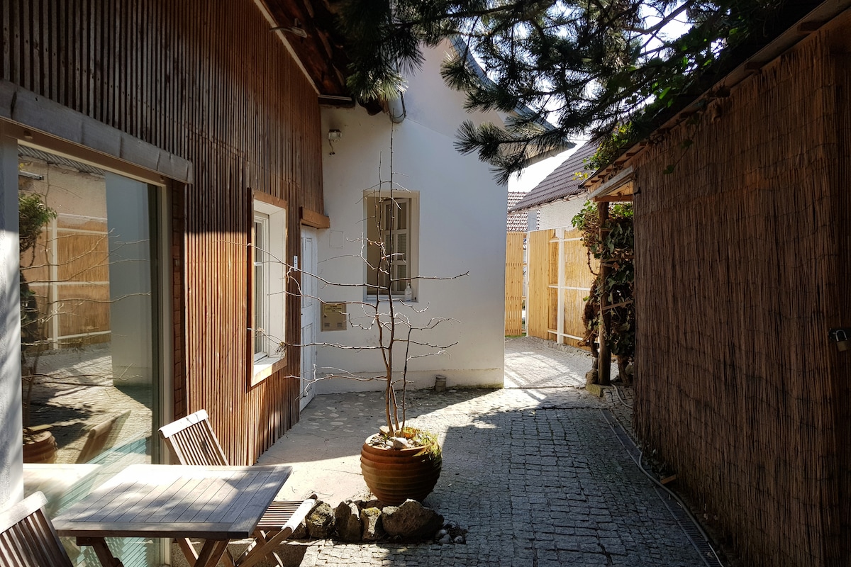 Light & bright, spacious for 2 and cosy for 4. Only 5 minutes from the Central market place, up into the greenery of the Castle Hill. Planning on visiting the Castle? You're already halfway there. Hidden, quite and remote, just like in the country, but when stroll down the hill, cross the street, and you're at frenzy pedestrian zone. The place is newly furnished and practical. Parking & BBQ outside, comfy bed inside, and it's "a no tuck in" on the Castle Hill. Welcome to my jungle.